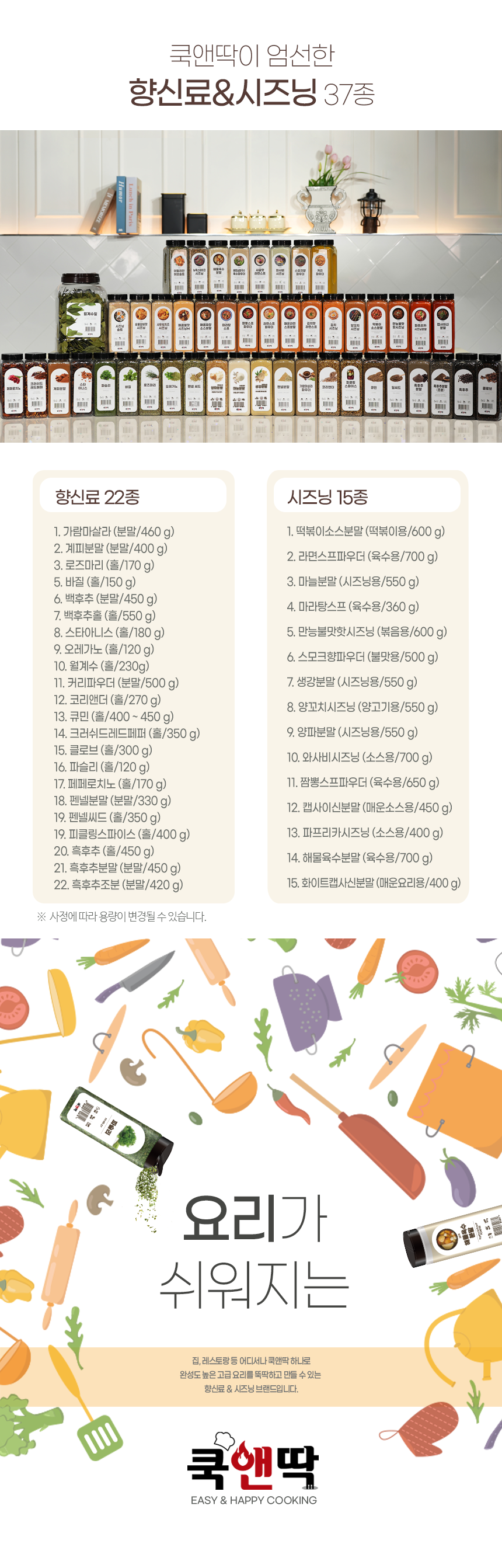 요리의 맛, 향, 멋을 더하는 향신료/시즈닝 쿡앤딱!